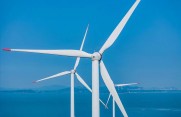 在波瀾壯闊的大海上,一座座白色風車屹立不倒,日夜不息地將風能轉化為清